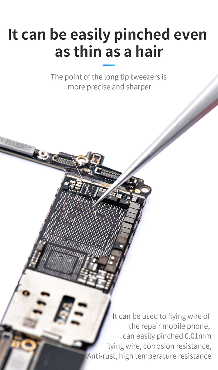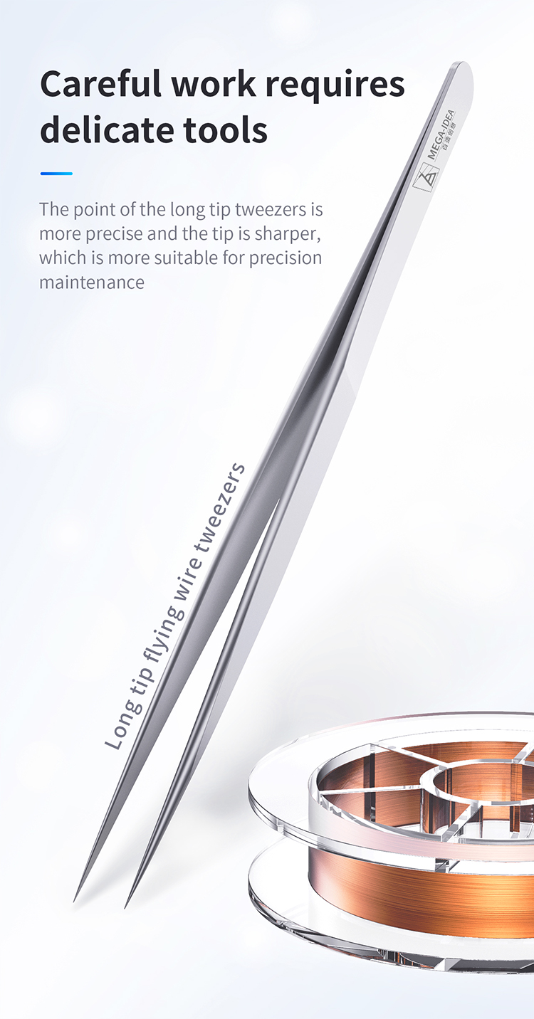 The tip of the long tip tweezers is more precise
